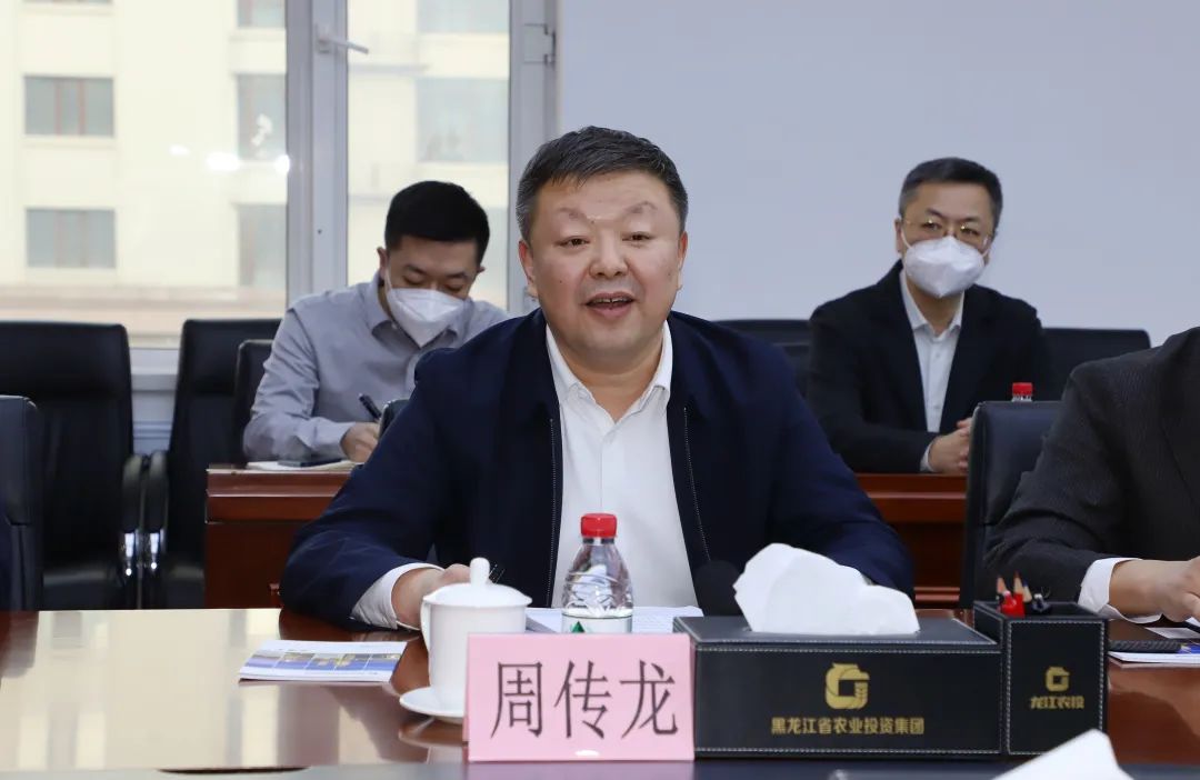 武安对周传龙一行表示欢迎并简要介绍了农投集团企业发展和“六大板块”运行情况。武安表示,农投集团自成立以来,四年四大步,站稳百亿级企业台阶。作为我省农业产业投融资平台和对外合作承载平台,农投集团是省委省政府实施“农业强省”“生态强省”战略的重要抓手。农投集团积极贯彻落实党的二十大精神,深入推动“四个农业”建设,加快数字农业、智慧农业和生物农业发展,为全国农业发展提供龙江方案。双方开展签约对于促进政企良性互动、共同助力龙江经济发展、营造良好营商环境,具有十分重要的意义。希望双方充分发挥各自优势,守正创新,携手实现共同发展,打造政企合作样板,切实把党的二十大精神落到实处深处。