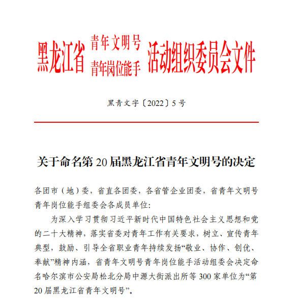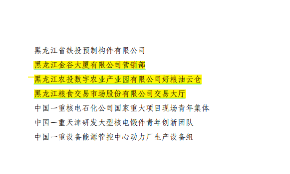 一直以来,黑龙江粮食交易市场股份有限公司交易大厅始终把创建“青年文明号”活动作为凝聚青年、团结青年、培养青年的有效形式,内练业务素质、外树窗口形象。以争创“青年文明号”为契机,全力打造“四零”服务窗口,推行“一站式”便民服务,通过一系列举措,打造程序最简、审批最快、时间最短、服务最优的服务窗口。曾荣获2014-2016年度省级“优秀青年文明号”;2017年获得省级文明单位标兵;2020年获得第六届全国文明单位荣誉称号。