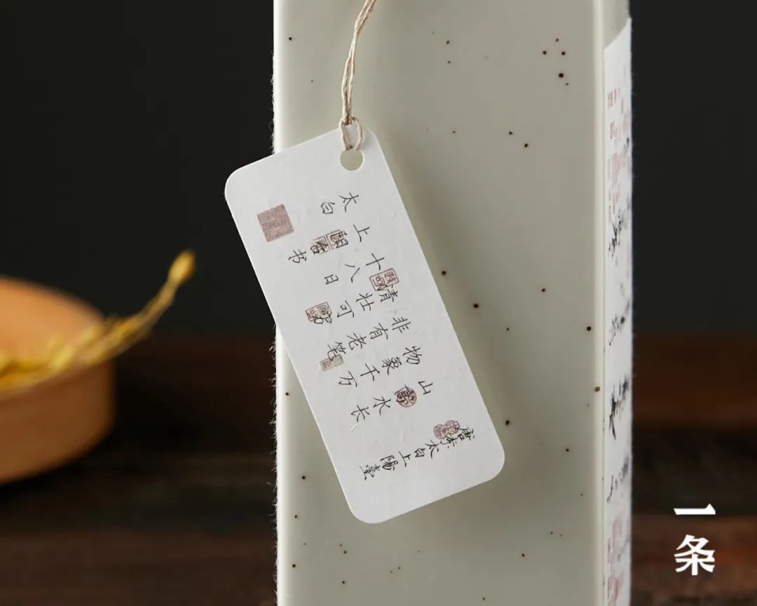 瓶身包装上,采用宣纸,以《上阳台帖》原文布局,尽显文人意趣。