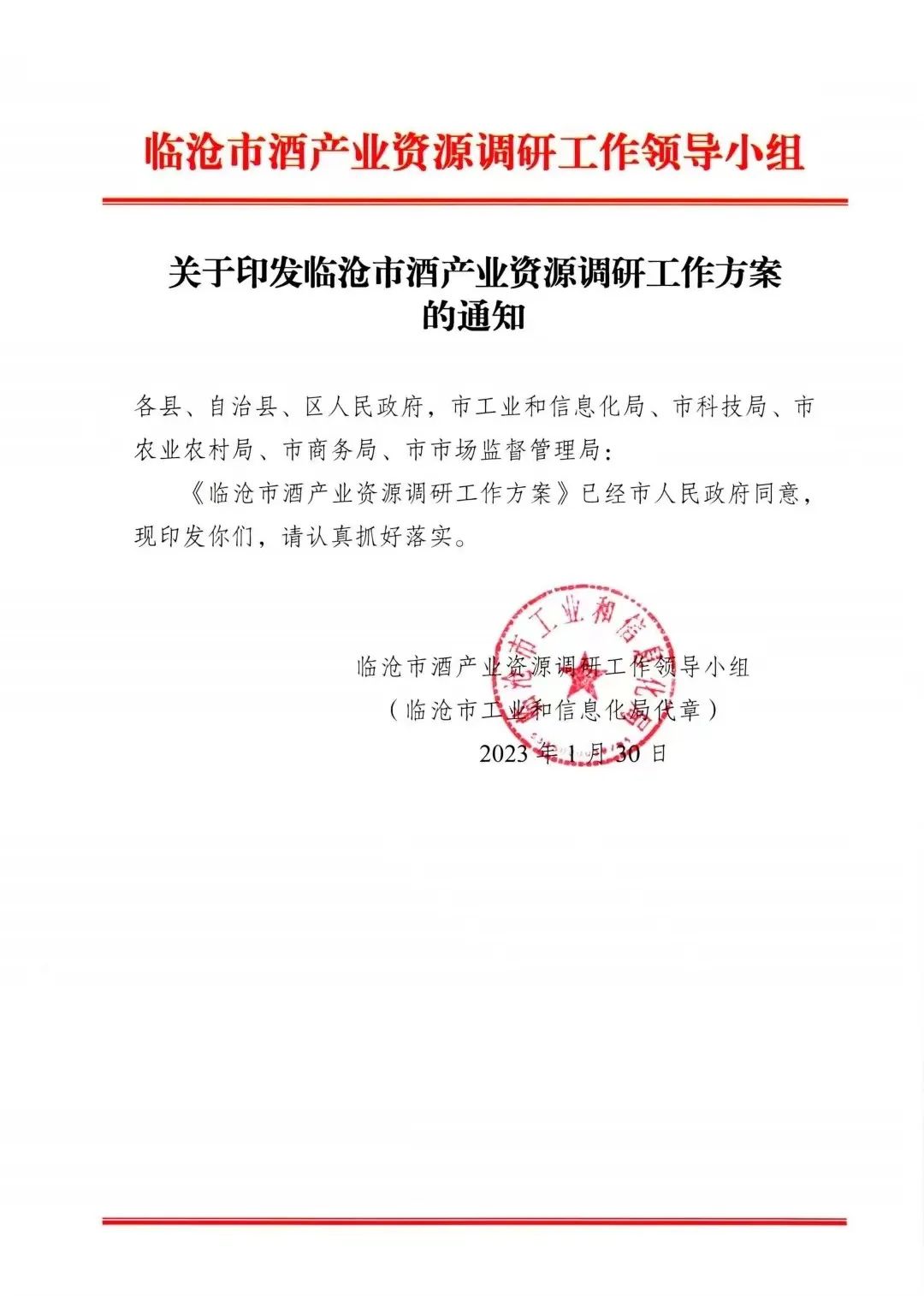 为认真贯彻党的二十大和中央经济工作会议、省委经济工作会议、市委经济工作会议精神,落实好省委书记王宁同志在云南省主要领导干部学习贯彻党的二十大精神专题研讨班上的讲话精神,根据《临沧市资源大调研活动实施方案》安排部署,临沧市酒产业资源调研工作领导小组开展酒产业资源调研活动。