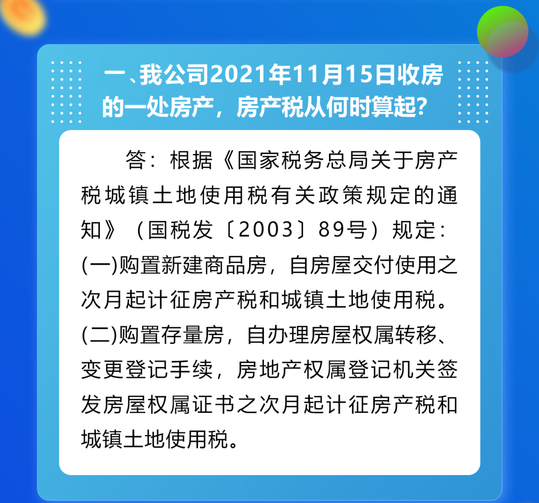我公司2021年11月15日收房的一处房产,房产税从何时算起?