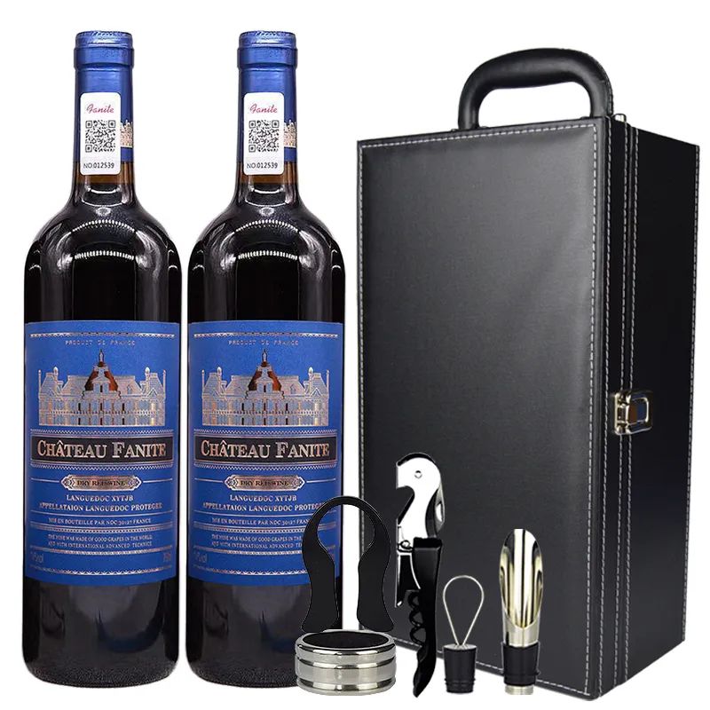 红酒赤霞珠干红葡萄酒2支皮盒送开瓶四件套双支装