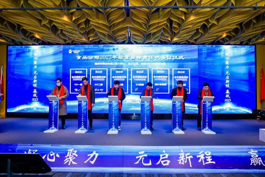 各业务部门负责人上台签订2023年经营目标责任状。KA二部朱俊卿代表所有业务人员表态:“2023年的攻坚战已经打响,所有的销售人员都进入战斗状态,我们将继续拼博、积极进取,用饱满的热情和高昂的斗志去迎接接踵而来的挑战和机遇;用全力以赴完成公司下达的目标,也向公司交上一份满意的答卷。”