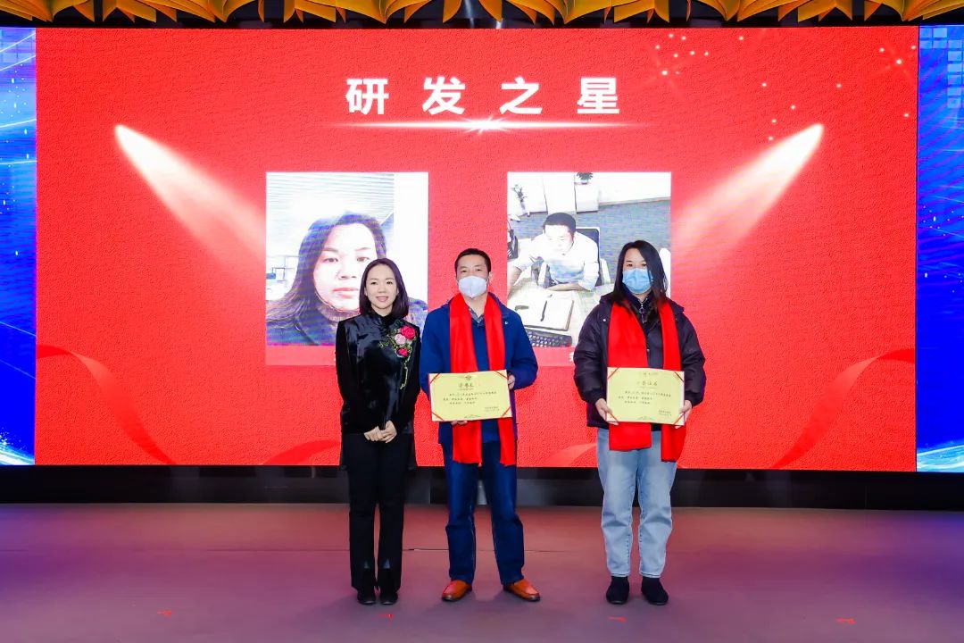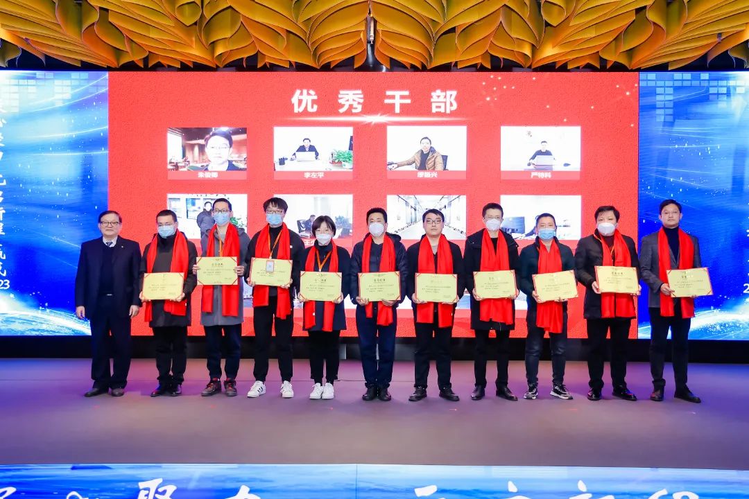会上表彰了海通集团食品公司2022年度最佳营销团队、最佳使能团队、降本增效奖、优秀员工、销售之星、研发之星以及优秀干部。