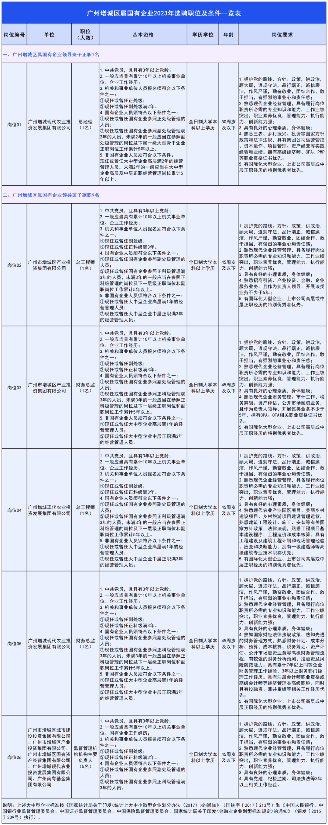 1.广州增城区属国有企业2023年选聘职位及条件一览表