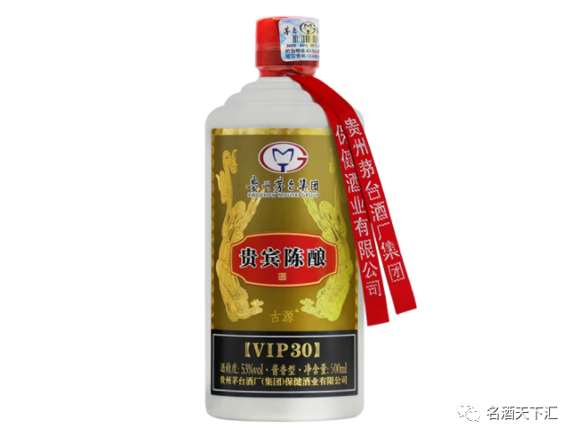 古源贵宾陈酿酒(VIP30)即采用贵州茅台酒工艺酿制的白酒,它以完整的高粱作为原料(破碎率不高于20%),且一定是仁怀地区生产的红樱子糯高粱。其单次酿制周期长达1年,期间需要2次下沙(投料),9次蒸煮,8次发酵,7次取酒,原酒酿制完毕后窖藏3年