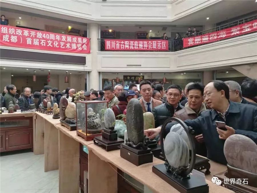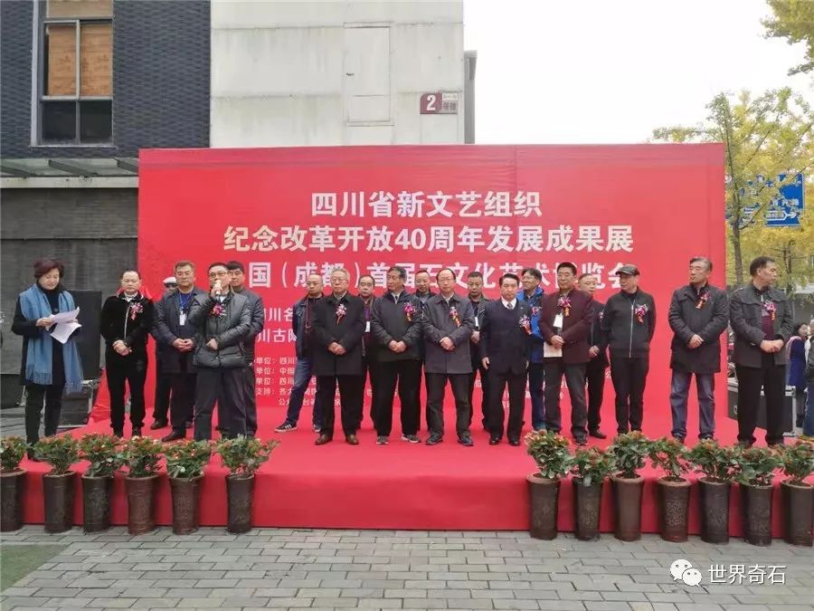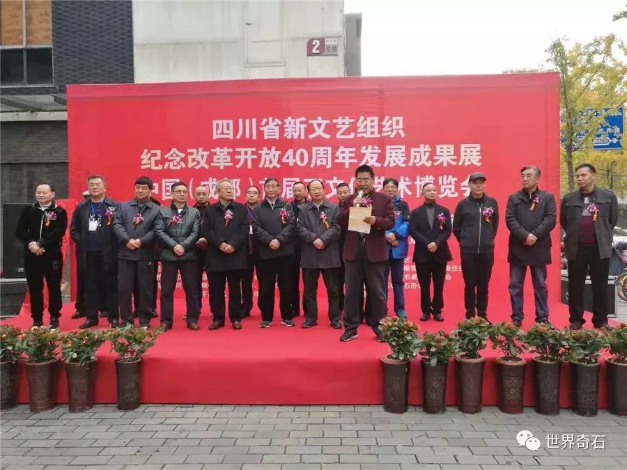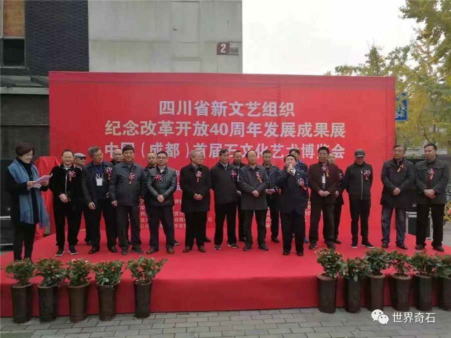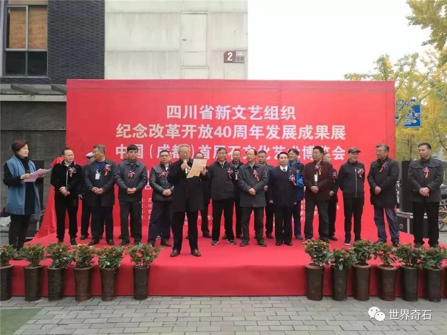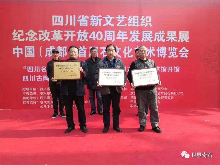 中国·成都首届石文化艺术博览会, 2018年11月24日上午十时,在四川省成都市中心锦绣工场古玩城隆重开幕,来自全国各地的石友和商家以及赏石名家,在美丽的蓉城欢聚一堂。当天下午组委会宣布了在参展的八百多方奇石展品中,评选岀的"四川名石“和四川名石入围奖名单,同时为参展团队颁发了组织奖。