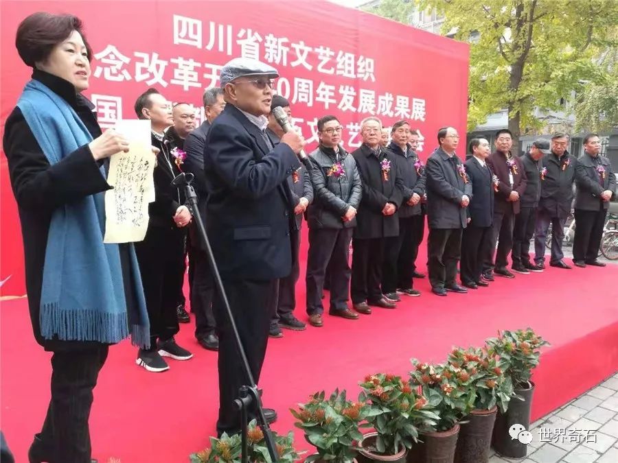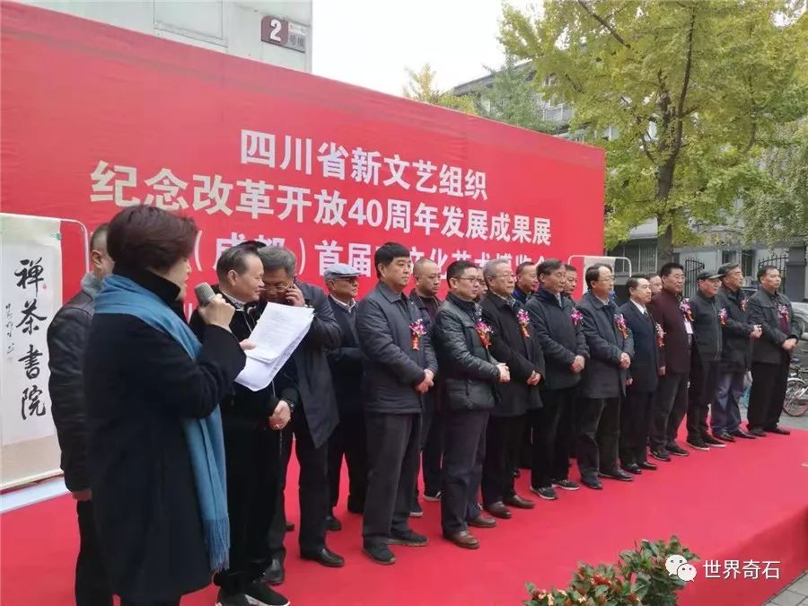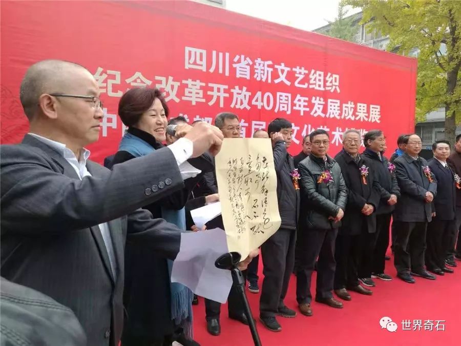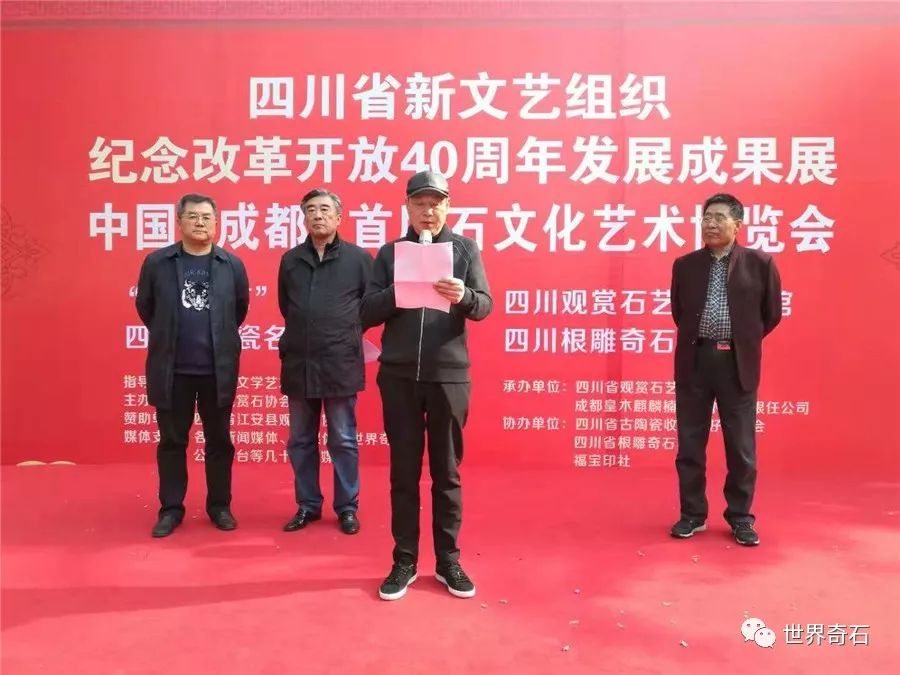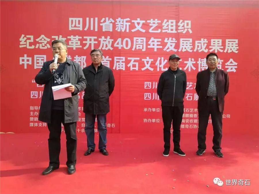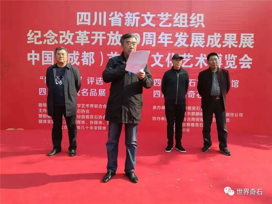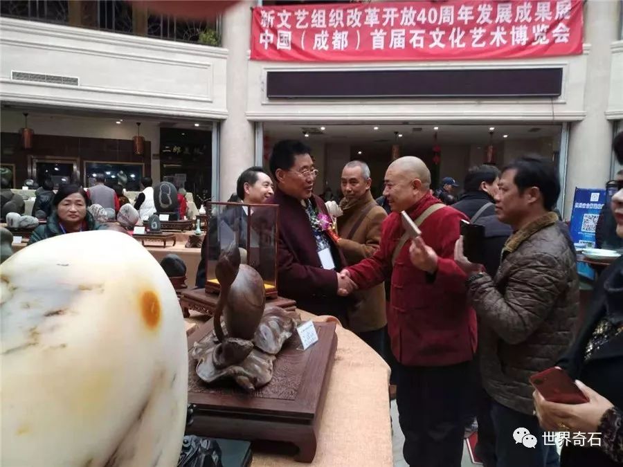 中国·成都首届石文化艺术博览会, 2018年11月24日上午十时,在四川省成都市中心锦绣工场古玩城隆重开幕,来自全国各地的石友和商家以及赏石名家,在美丽的蓉城欢聚一堂。当天下午组委会宣布了在参展的八百多方奇石展品中,评选岀的"四川名石“和四川名石入围奖名单,同时为参展团队颁发了组织奖。