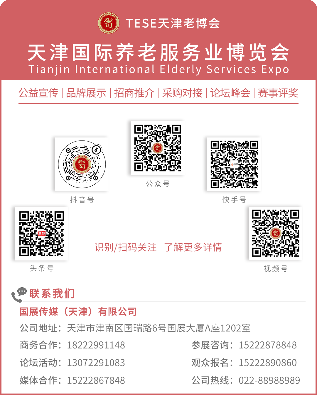 中国老年保健协会、天津市老龄产业协会、天津市老年俱乐部、天津市社区养老服务业协会、国展传媒(天津)有限公司