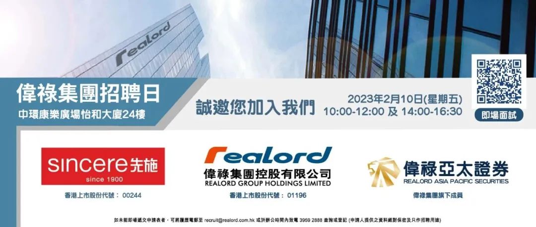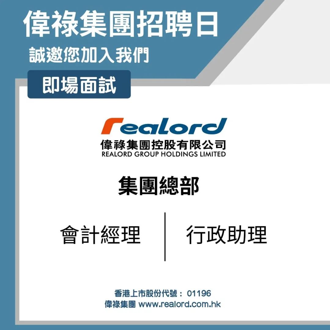 *如未能即场递交申请表者,可将履历电邮至recruit@realord.com.hk或于办公时间内致电3959 2888查询或登记。*申请人提供之所有数据将绝对保密,并只用作本集团/ 本公司之招聘用途。
