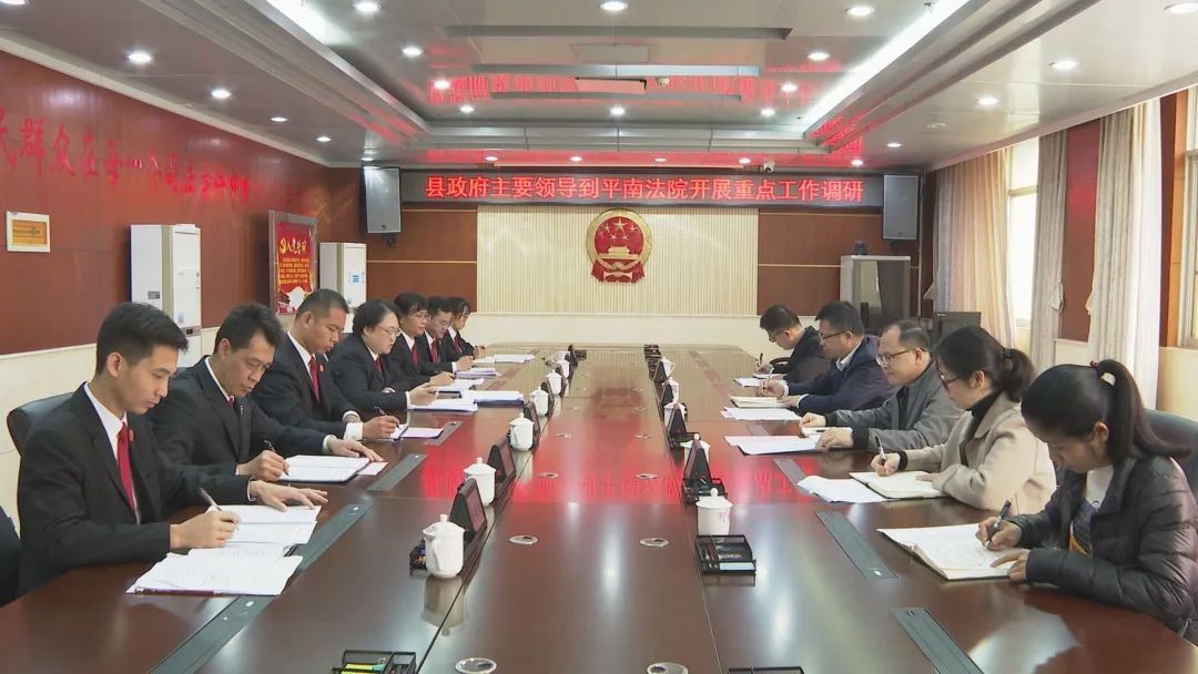 在平南县人民法院,杨大东听取了法院主要工作情况和需要县政府解决的问题汇报,并对法院在2022年取得的工作成绩表示充分肯定。他指出,新的一年县政府将一如既往地支持平南法院的各项工作,并积极协调解决历史遗留问题。他强调,加强诉源治理是减轻“人少案多”工作压力的有效途径,法院要加大诉前调解力度,多措并举化解群众矛盾纠纷。要联合相关部门,加大普法力度,不断提升群众法律意识。在围绕中心、服务大局方面,法院要充分发挥审判职能,为推动全县经济社会高质量发展提供更加优质、高效、有力的司法服务和保障。