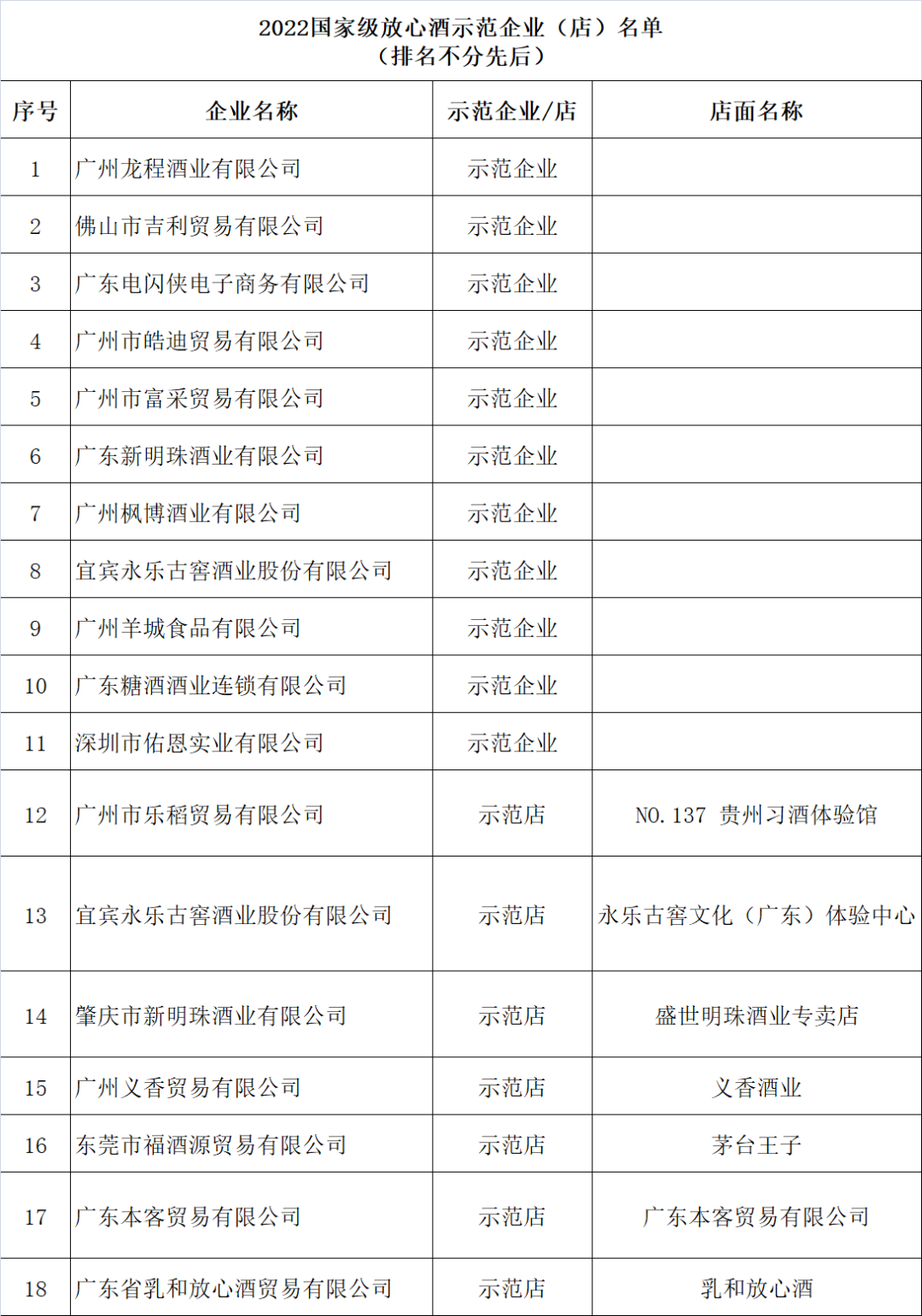 放心酒示范企业(店)