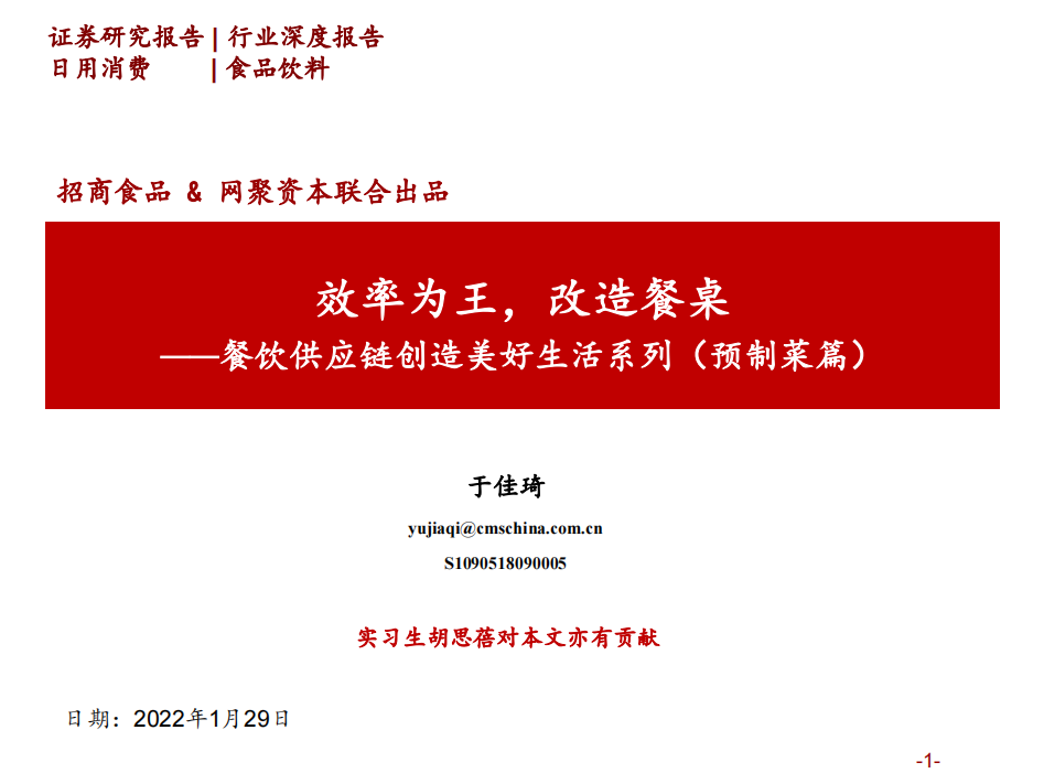 2022食品饮料行业深度报告-餐饮供应链创造美好生活系列(预制菜篇)