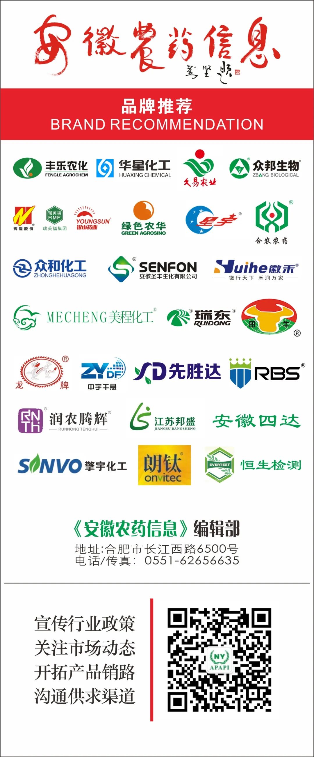 由于微信修改了推送规则,没有经常留言或点“在看”的,会逐渐收不到推送!如果你还想每天看到我们的推送,请将安徽农药信息加为星标或每次看完后点击一下页面下端的“在看”,谢谢关注!