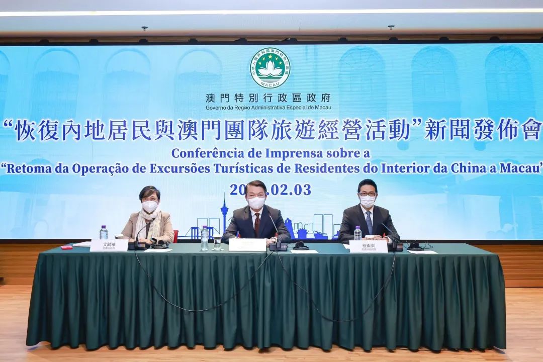 國務院港澳事務辦公室昨(3)日發佈《關於全面恢復內地與港澳人員往來的通知》,於今年2月6日零時起實施,當中包括恢復內地居民與香港、澳門團隊旅遊經營活動。旅遊局2月3日舉行新聞發佈會介紹旅遊宣傳推廣及優惠方案,為恢復接待內地旅行團與業界作好準備,同時部署宣傳開拓國際市場客源,加快促進澳門旅遊經濟復甦。