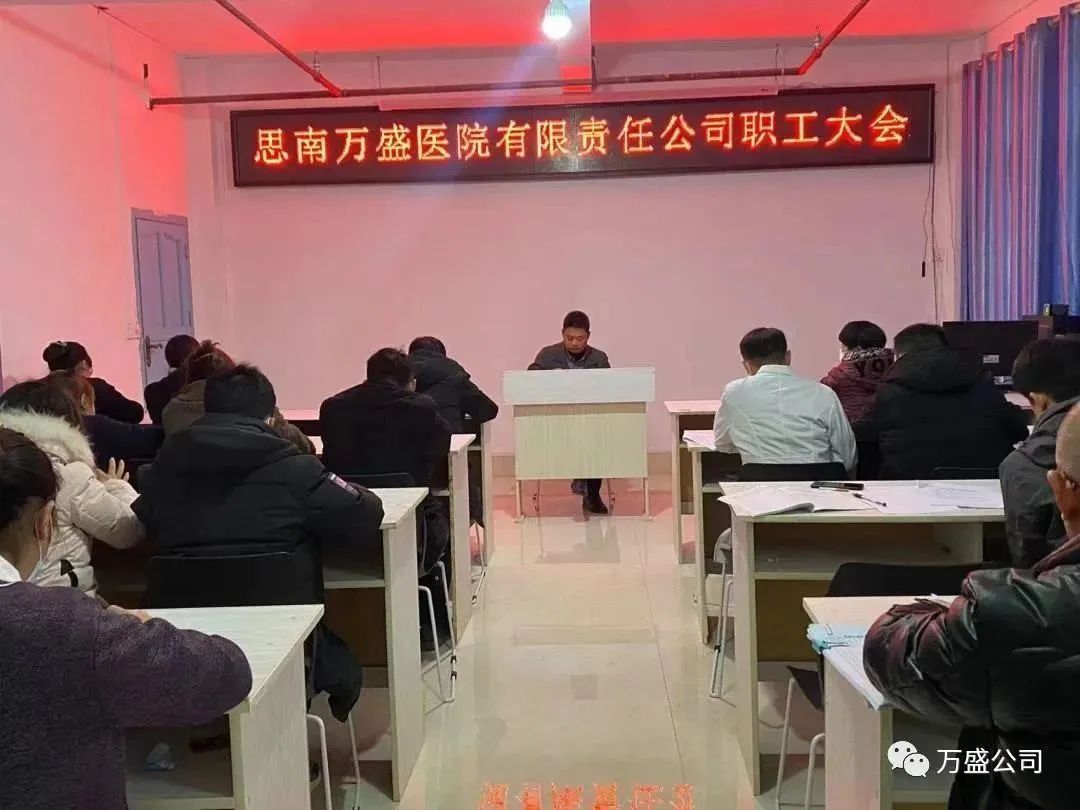 1月16日,思南万盛医院有限责任公司总经理唐亮组织召开万盛医院职工大会,传达贯彻有关工作会议精神,并安排部署医院业务、安全生产和“春节”期间值班值守等工作。