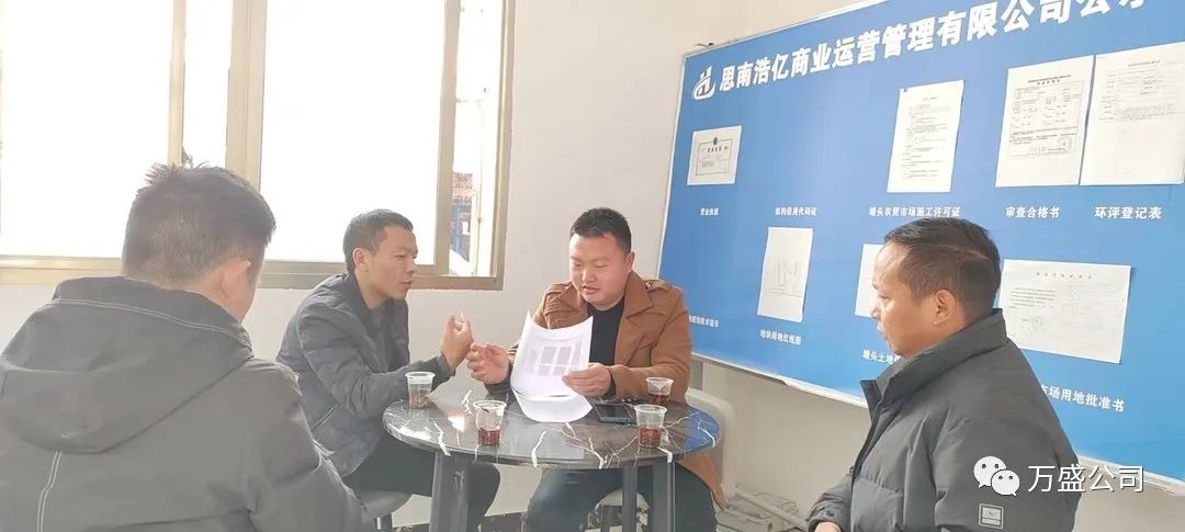 1月30日,万盛集团副总经理王曾林同塘头镇副镇长冉永超对接农贸市场后续工作推进相关事宜。