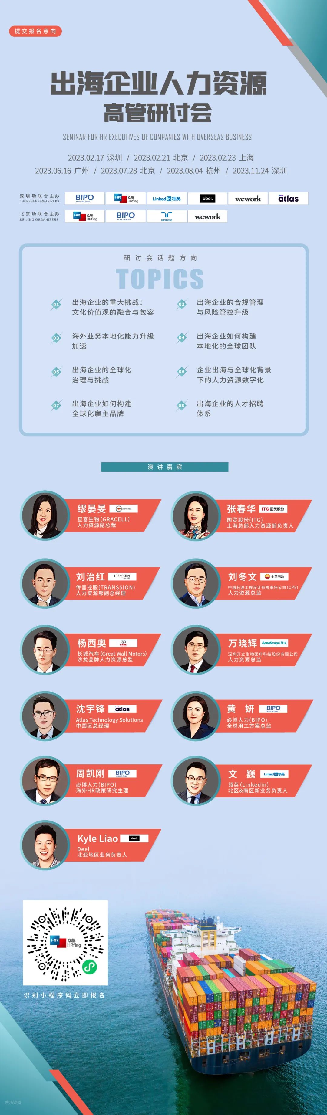 受众目标:全球及国内领先出海企业的高层管理人员、首席人力资源官、人力资源副总裁、人力资源总监、人力资源经理等
