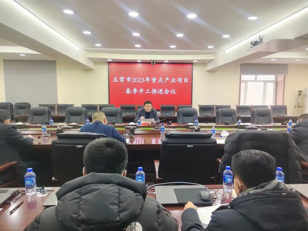 为贯彻落实市委经济工作会议精神,推动全市重大项目加速开工、投产达效,实现2023年重点产业项目开门红。2月3日下午2点,在市政府四楼常委会议室召开2023年重点产业项目春季开工推进会议。会议由市委常委、常务副市长刘亮主持,政法委、宣传部分管领导同志、人大办、政协办及11个市直部门主要领导同志和安家镇主要领导参加会议。