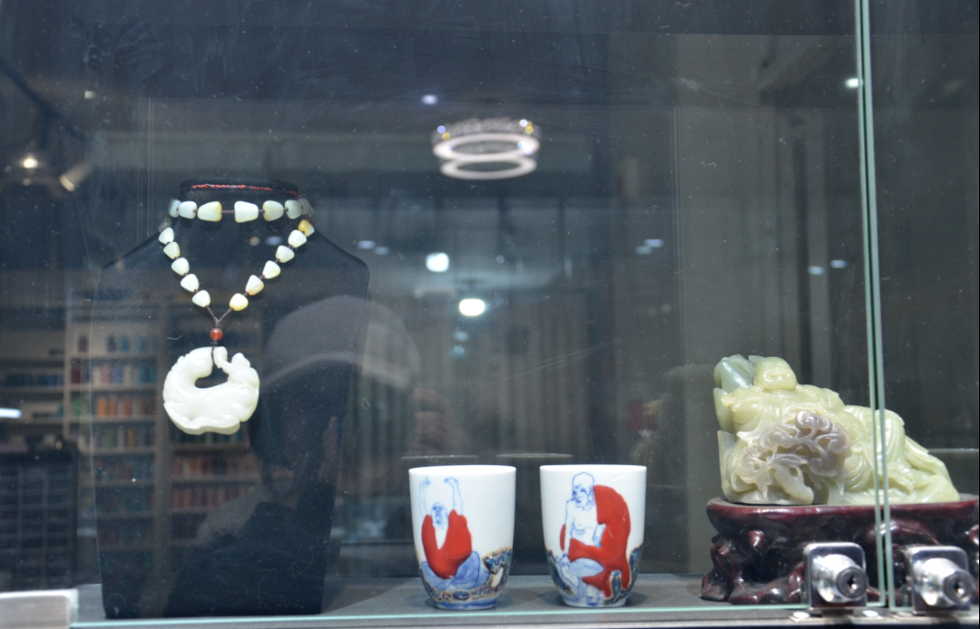 经营品类包括:精品海外回流古玩、紫砂、陶瓷、字画、翡翠、和田玉、玛瑙、寿山石、珍珠、文玩杂项,还有老酒、瓷器修复、编绳等。