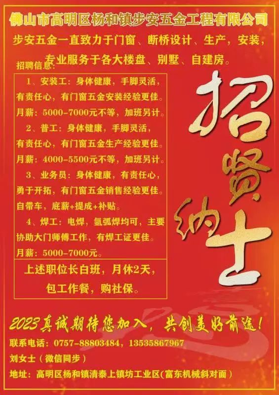 职位:扪工、安装工、打包装