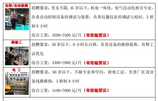 招聘岗位:电工