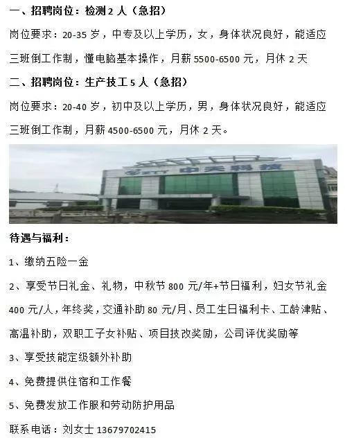 1.清洁工:年龄40至50岁,要求:能吃苦耐劳,卫生意识强,工作心态较好,工作内容:清洗胶箱胶篮,环境卫生维护,待遇:薪资3000元/月,月休4天,包吃,上班时间:8:00-17:30,以上上班地点:荷城街道荷香路车站附近