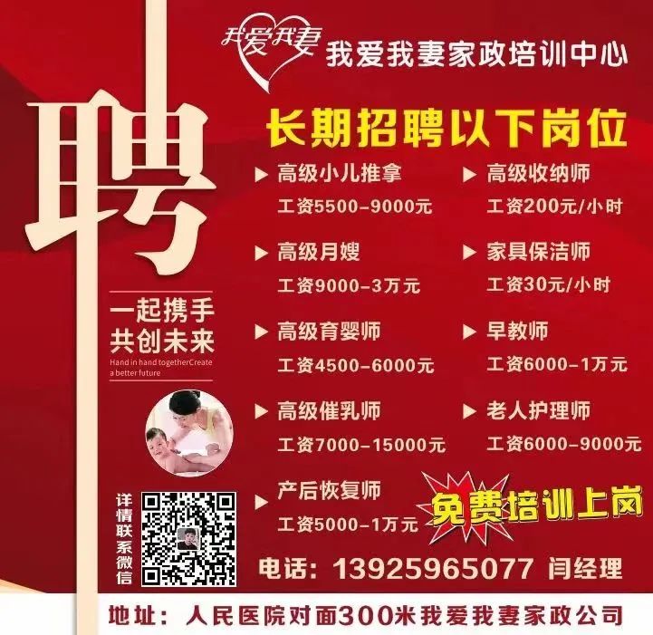 我爱我妻高端家政公司急招以下职位:
