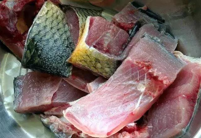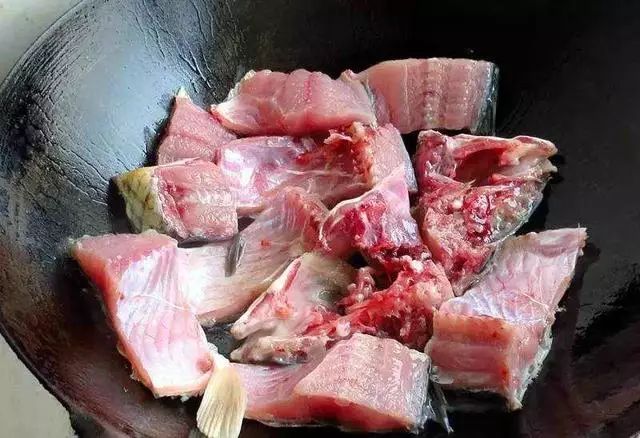 斩成大块,家里锅小放不下整条的鱼,再放少量盐腌制20分钟