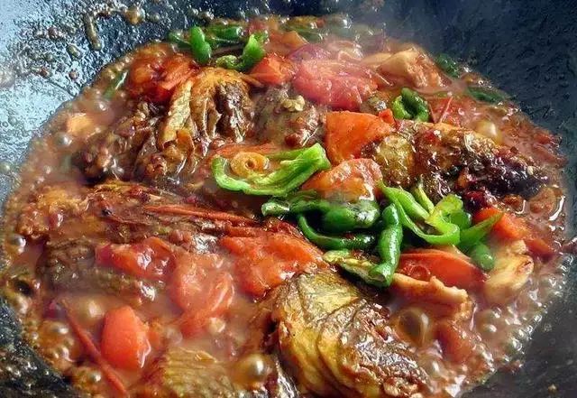 炖至汤汁略显黏稠后放入番茄、青椒、持续炖煮。
