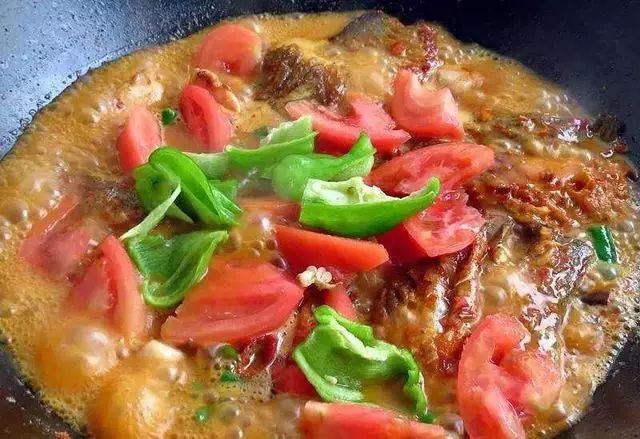 番茄 青椒增进了鱼的层次感
