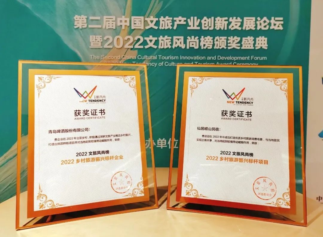 1月13日,第二届中国文旅产业创新发展论坛暨2022文旅风尚榜颁奖盛典在上海举行。青岛啤酒股份有限公司获评 “2022乡村旅游振兴标杆企业”,同时作为青岛啤酒支持国家乡村振兴的代表项目——“仙居崂山”民宿项目获评“2022乡村旅游振兴标杆项目”。