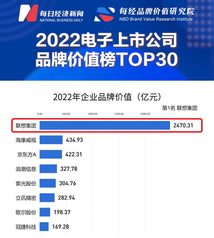 高居中国电子行业上市公司品牌价值榜首,不仅代表联想集团的产品与服务被消费者认可,更代表联想集团以用户为中心的创新成果已转化成为独特的数字生活体验。当前,联想正在推动以服务为导向的转型,致力于把握数字经济机遇,为更多用户打造可持续发展的智慧未来。