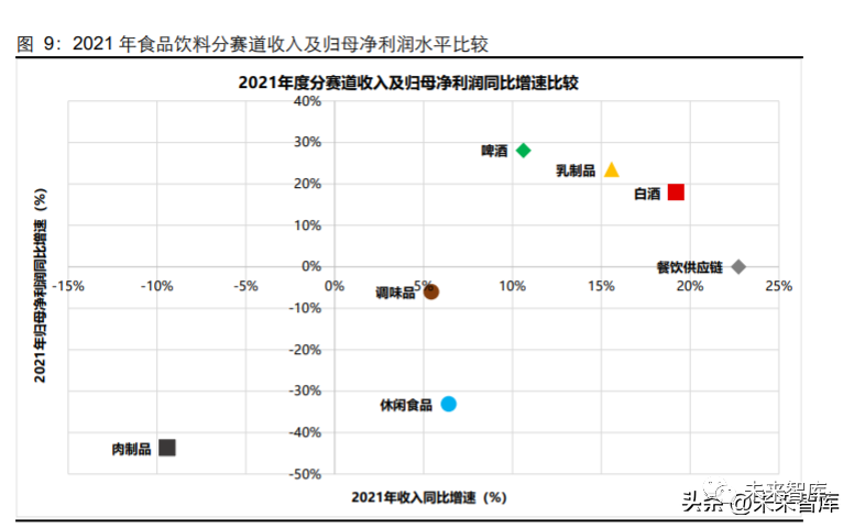 从今年前三季度细分板块收入利润的表现情况来看,其中白酒的表现最为稳定,龙头经 营韧性十足,一方面由于对渠道端控制能力更强,另一方面龙头品牌优势突出,挤压式 竞争,市占率在弱势市场下进一步提高。其次啤酒板块量利在疫情的影响下依然保持齐 升态势,说明啤酒板块内部升级趋势依然延续,实现以价补量,逆势挺价,叠加渠道多 元化布局,进一步降低餐饮层面的影响。而其他细分板块今年收入利润表现情况和去年 同期相比,波动性相对较大。