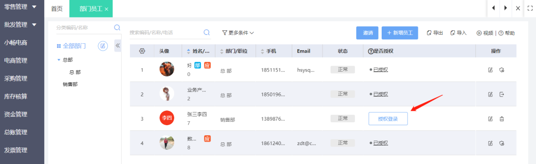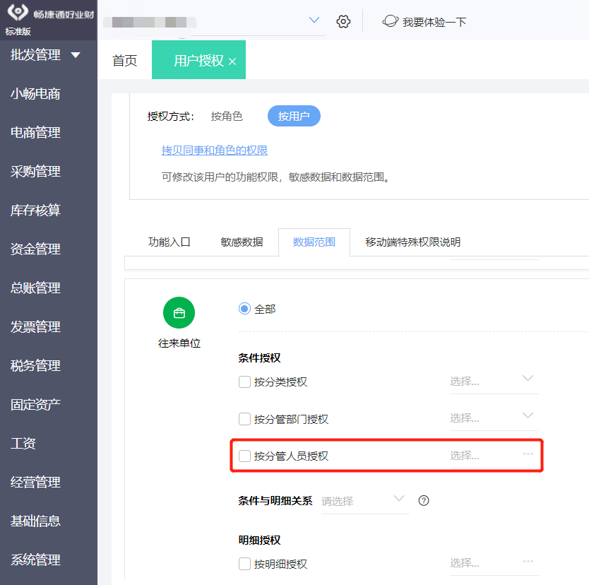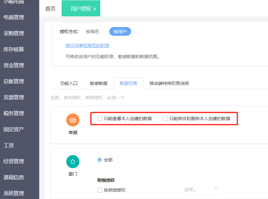 系统管理-权限设置-用户管理来授权数据范围。