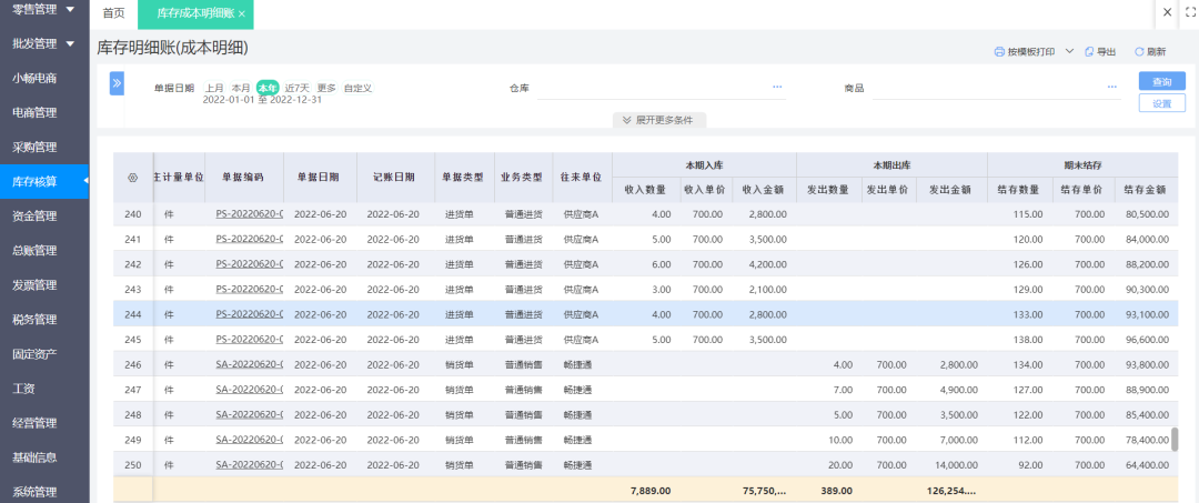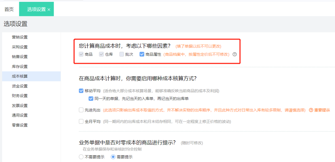 在好业财中,可以设置成本影响因素为商品、仓库、批次和属性。这样系统会自动计算出成本,查看成本更精细。