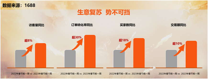 来自1688的一份调研报告显示,春节期间平台上源头商家的订单同比大增,超过六成的商家认为今年的生意将实现10%以上的同比增长。