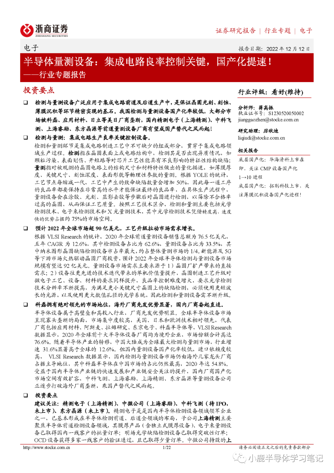 半导体量测设备行业专题报告:集成电路良率控制关键,国产化提速!