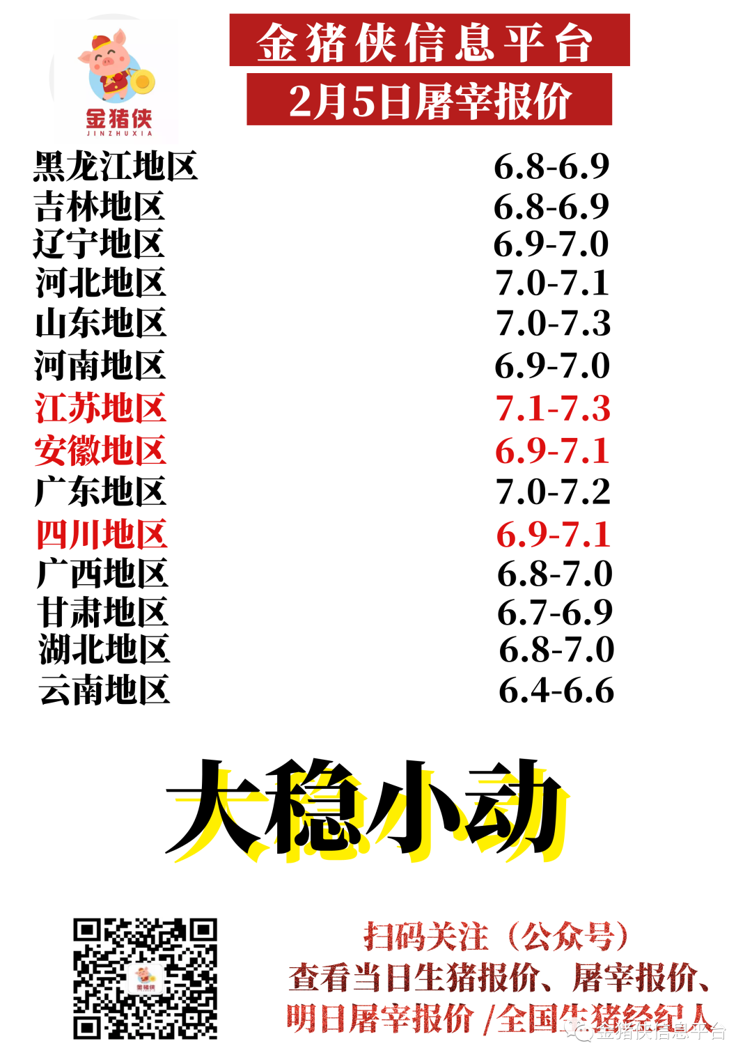 【金猪侠】2月5日屠宰企业收购价~【大稳小动】