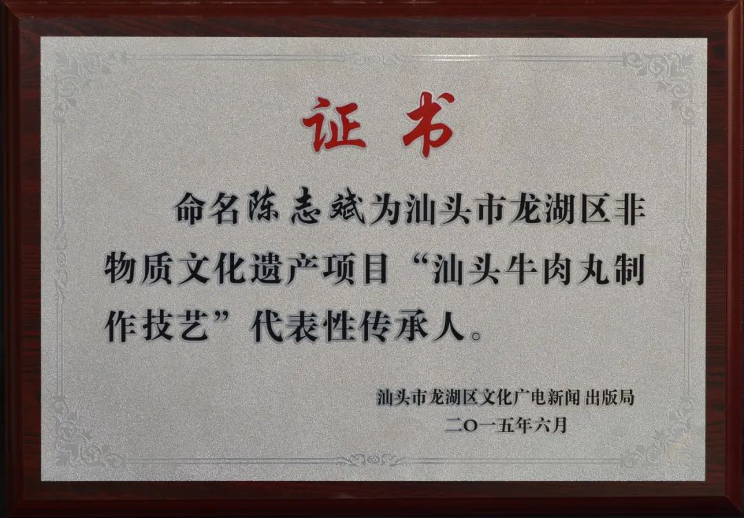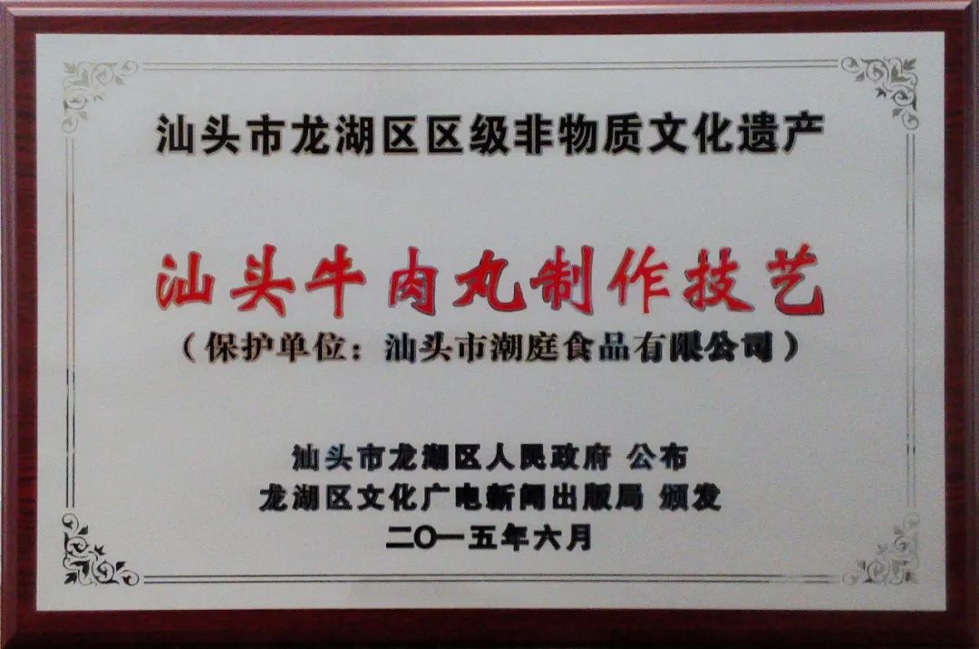 2015年06月 成为『汕头牛肉丸制作技艺』非物质文化遗产的保护单位