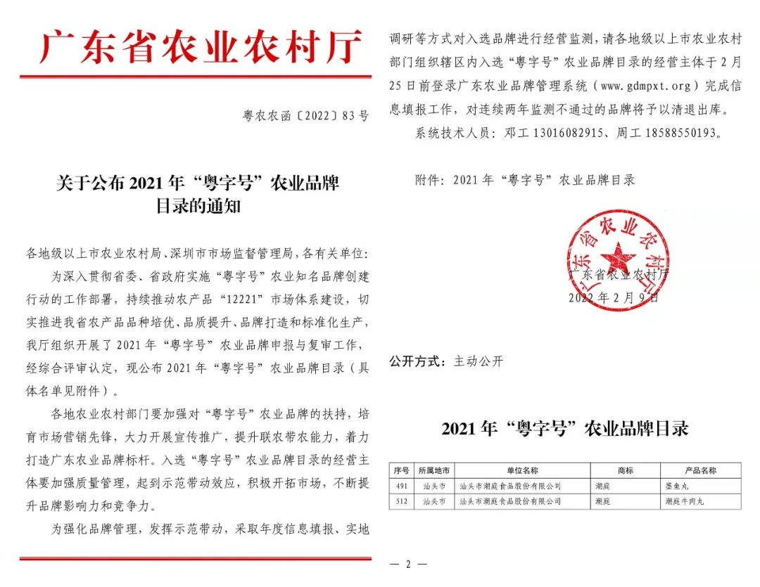 2022年2月潮庭墨鱼丸入选“粤字号”农业品牌目录