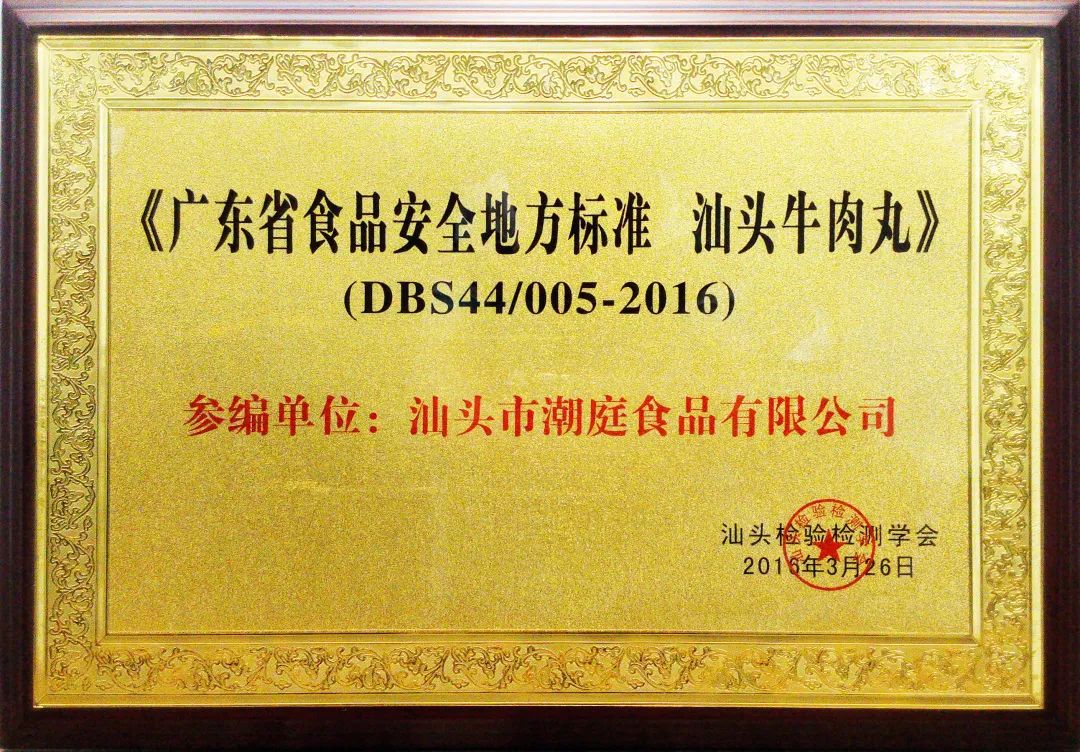 2016年10月 汕头牛肉丸地方标准起草单位 【广东省食品安全地方标准 汕头牛肉丸】DBS44/005-2016