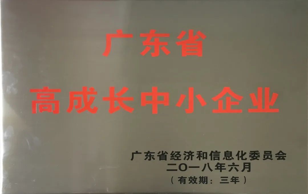 2018 年 06 月 公司取得了由广东省经济和信息化委员会颁发的《广东省高成长中小企业》