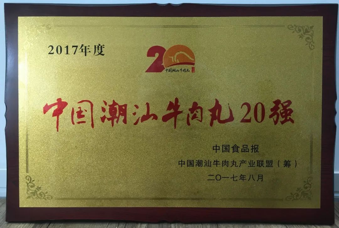 2017年8月 公司荣获“中国潮汕牛肉丸20强”