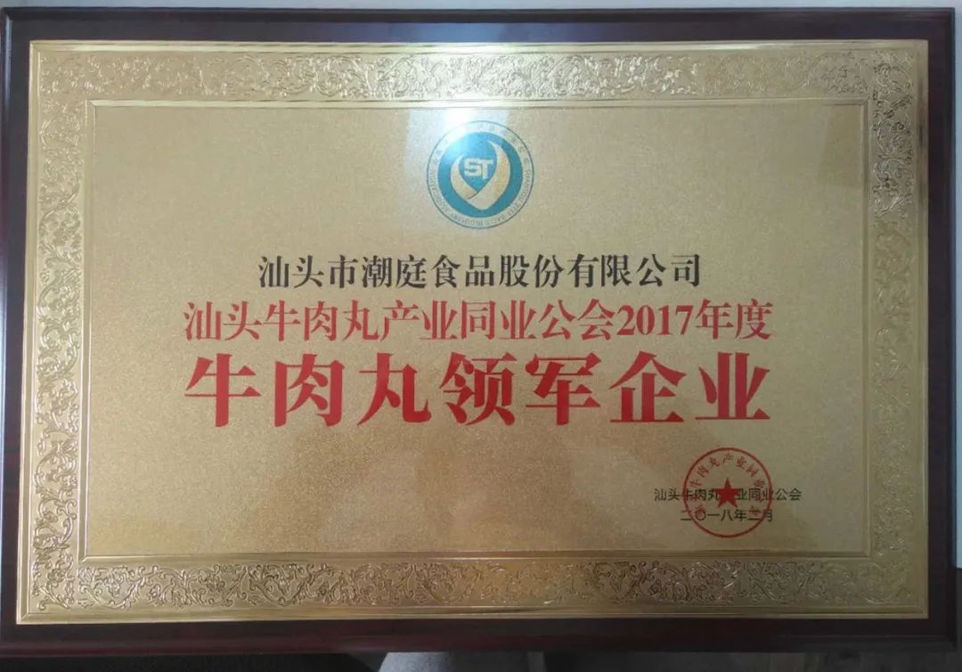 2018年2月 公司荣获“汕头牛肉丸产业同业公会2017 年度牛肉丸领军企业”称号