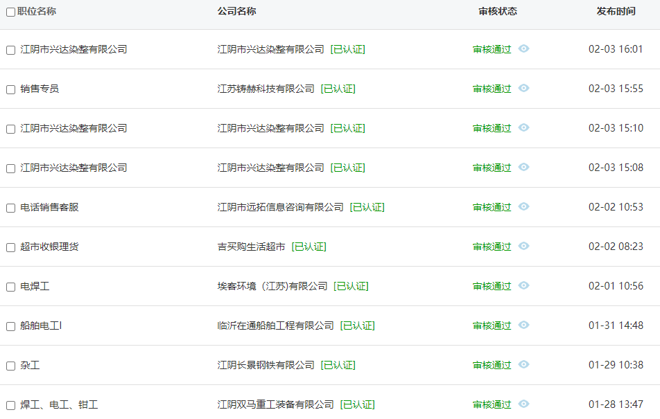 备注:所招岗位仅招本地人或在江阴定居至少2年以上