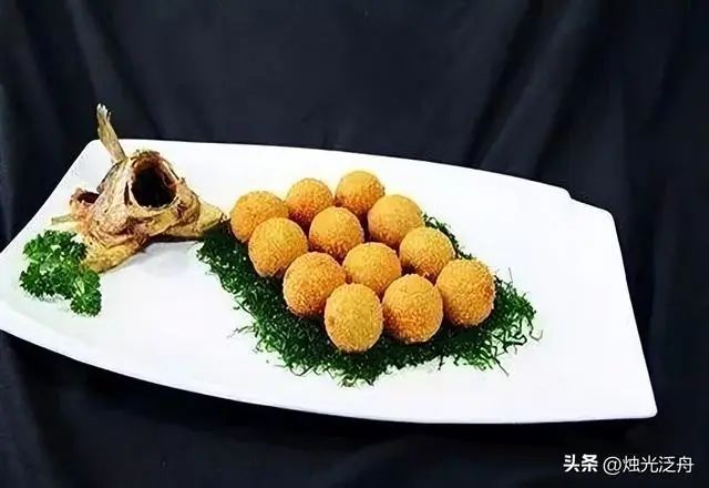2、芋艿去皮切片蒸熟,捣成泥,加C料调味,加D料做成坯子,酿入鱼肉做成球形,外拍生粉,拖蛋黄液,裹面包糠,待用。