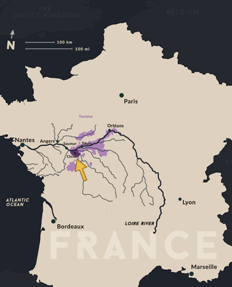 希侬产区(Chinon)位于法国卢瓦河谷中部,卢瓦河(Loire River)的左岸,产区分布于卢瓦河支流维埃纳河(Vienne River)的两岸,围绕着法国历史名城希侬(Chinon)。