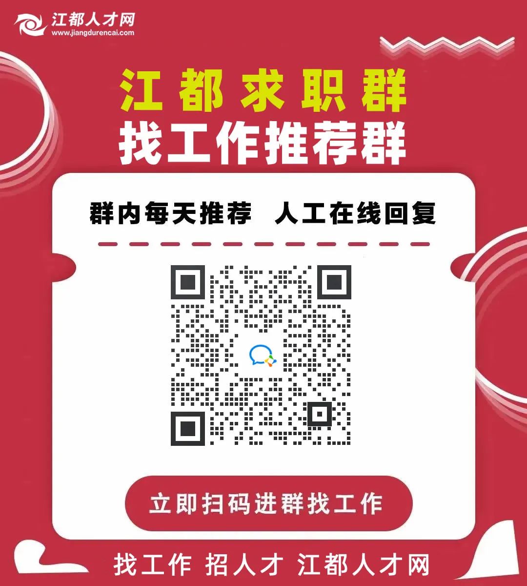 网站(www.jiangdurencai.com)、小程序、APP、微信公众号等名称均为江都人才网。关注“江都人才网”招聘求职更轻松!