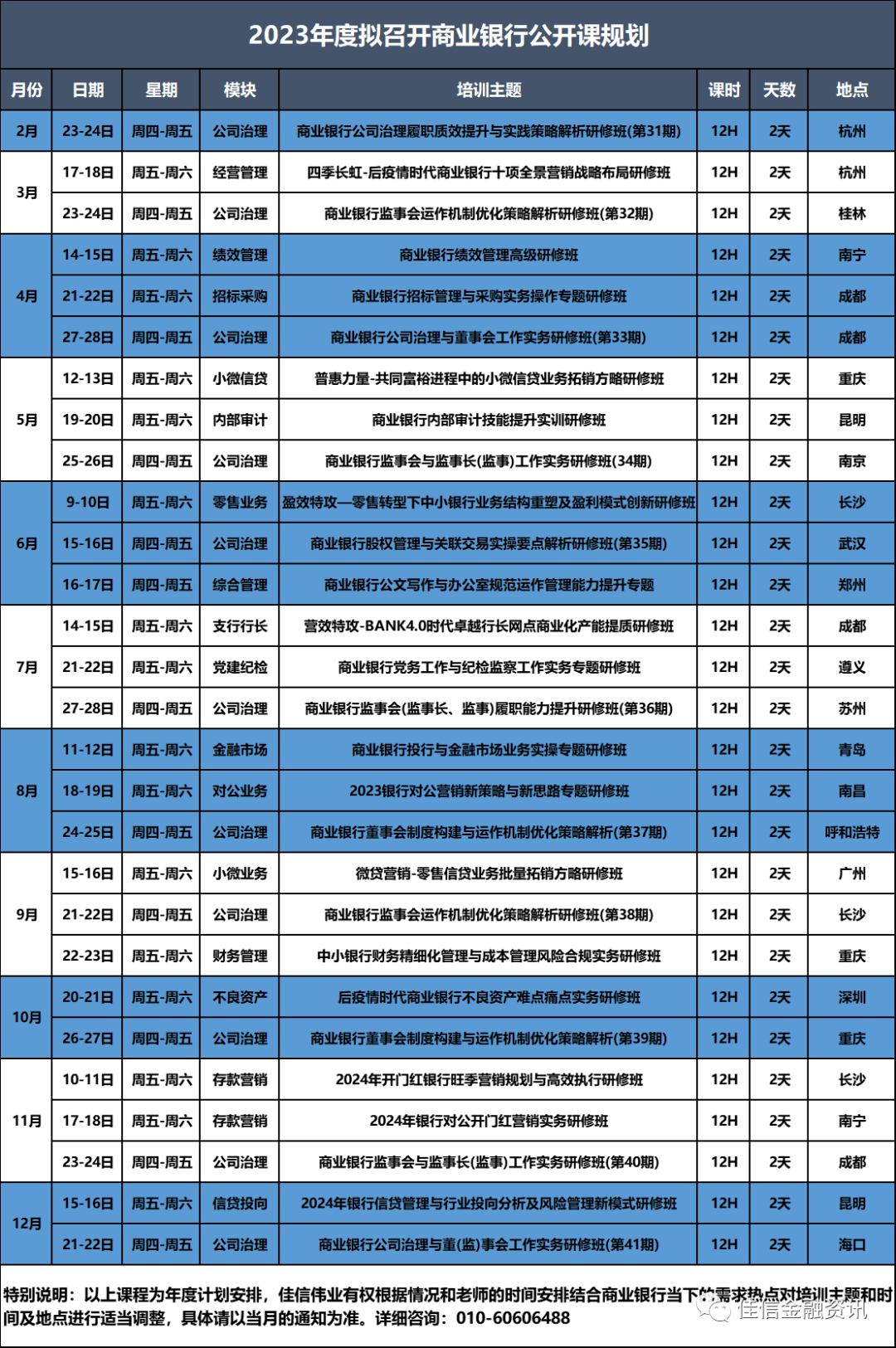 佳信·2023年度拟召开银行公开课